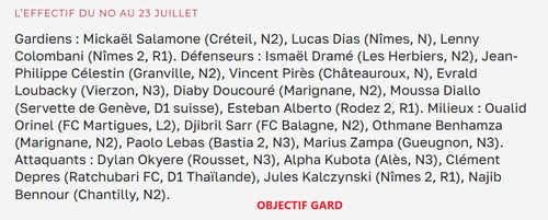 Ceux qui n'ont pas trouve de clus, l’avenir ne devrait pas être nîmois. C’est le cas de Cozzella, Delpech, Camara, Ngakoutou et Wade. Objectif Gard
